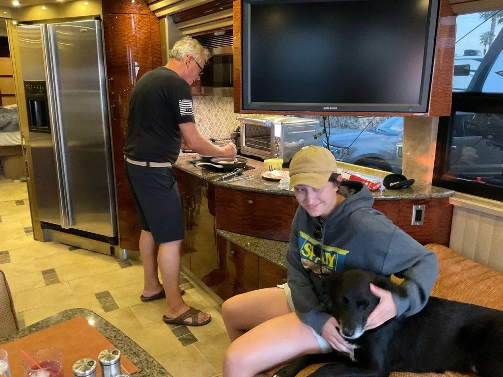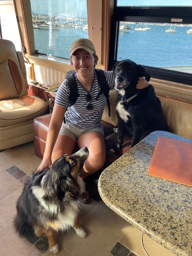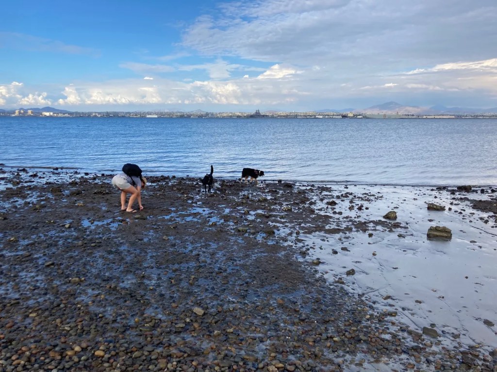 On Monday, my sister Sylvia’s daughter Darby came to visit. We had stopped for dinner with her a few nights ago and toured her new condo in North Park, San Diego. Darby came by the campground to walk the beach with the dogs and enjoy a Chef Jay dinner.