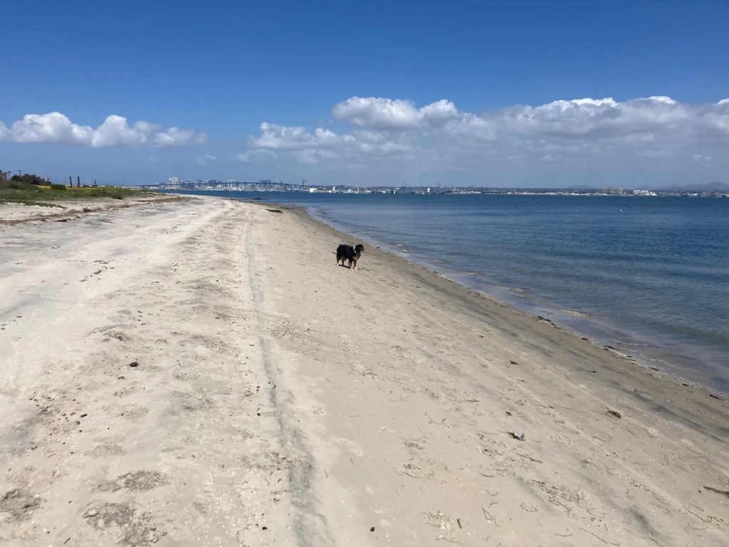 We took advantage of the beautiful weather (rain was on the horizon) and enjoyed long walks on San Diego Bay. Fiddlers Cove RV Park and Marina is on the Navy Amphibious Base; there are miles of military beachfront, which is not accessible to the public. This means lots of off leash running for us and 2/3 of the boys 😉