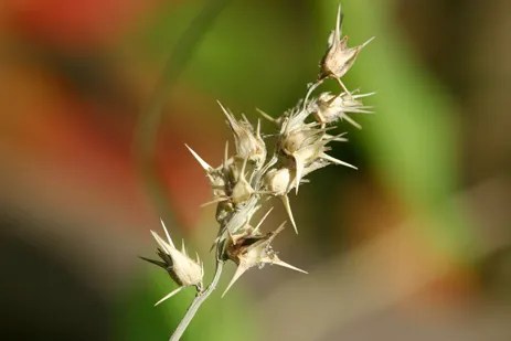 In late summer, apparently, these nasty, dried, balls of thorny seeds attach themselves to any passerby (tires, dog fur) in hopes of being transported and transplanted into fertile territory.