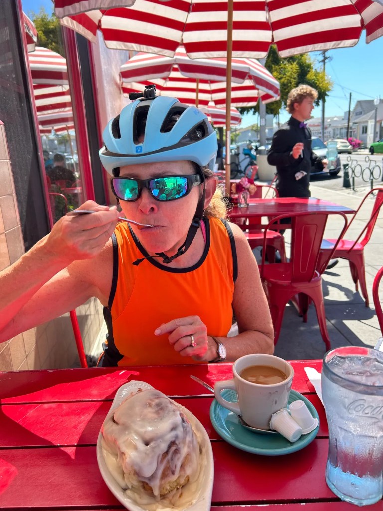In between the bay and the ocean, we stopped at one of our favorite breakfast stops, Clayton’s, and indulged in a humongous cinnamon roll.