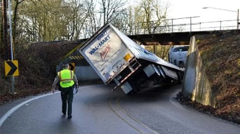 We’d seen pictures of bus and truck drivers who had tried to squeeze their tall rigs under short overpasses.