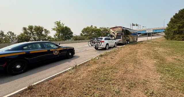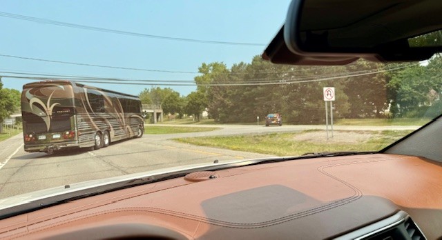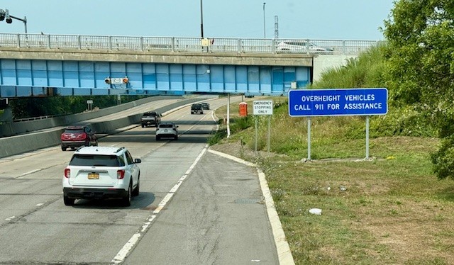 The Great State of New York lured and ensnared us into a heinous web: an overpass with a mere 12-foot clearance.Without any room in which to turn around on a busy highway, Tinkerbell admitted defeat, threw in the towel, and bowed her 13-foot frame to a worthy adversary: The Great State of New York.The New York State Police came to the rescue. Friendly Jay was soon sharing laughs with the state trooper, who assured Jay “this happens a lot.” We’re not sure if this really did happen a lot or whether the trooper was just trying to lessen our embarrassment. With traffic stopped along the highway, cars quickly piled up on the entrance ramp as our driver executed a 7-point-turn to get Tinkerbell out of her road pickle. The police escorted us the wrong way on a one-way highway until we could get to a place to safely change direction.As we crossed the bridge (from another route) that had been guarded by the 12-foot overpass, a humble Tinkerbell kept her gaze downward while wishfully reciting those famous last words, “There’s no place like home. There’s no place like home…”