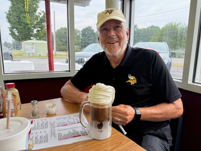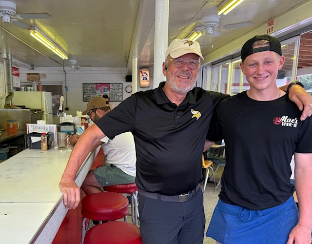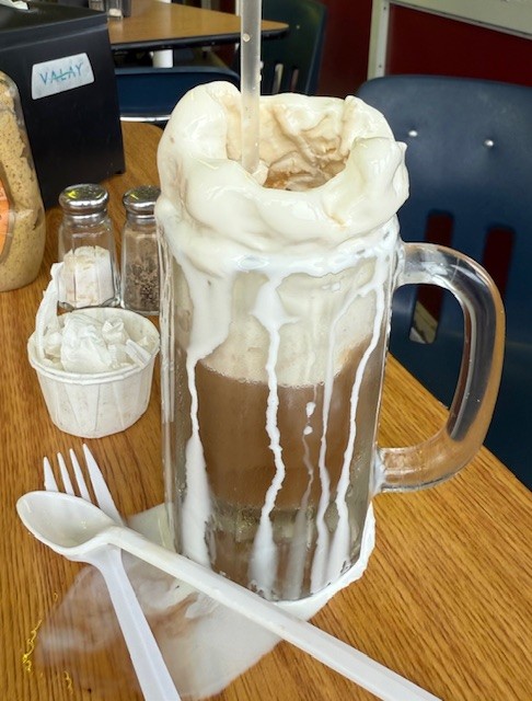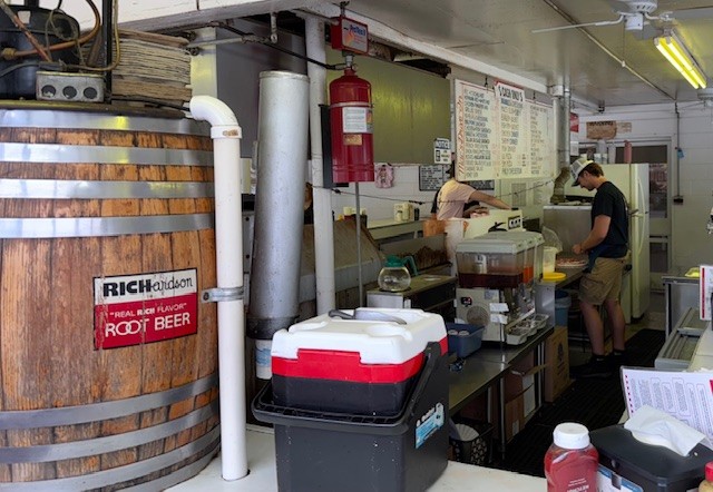 Mac’s is a busy place in the evenings: lines snake around the building and the parking lot is filled with cars.Mac’s serves Richardson Root Beer. Of course, we had to try it!Ooooooh. Mac’s Root Beer Floats (made with Richardson Root Beer) are what a Root Beer Float most certainly tastes like in heaven.Oh yes. Two please. We enjoyed our Float down to the very last slurp and will forever more refer to this part of the country as the Finger Lickin’ Lakes!Of course, Jay became friends with our wholesome server, a young college student working at Mac’s during his summer break.