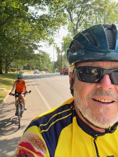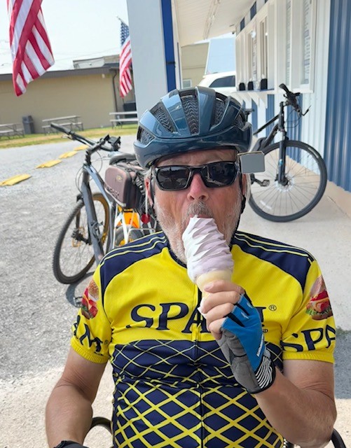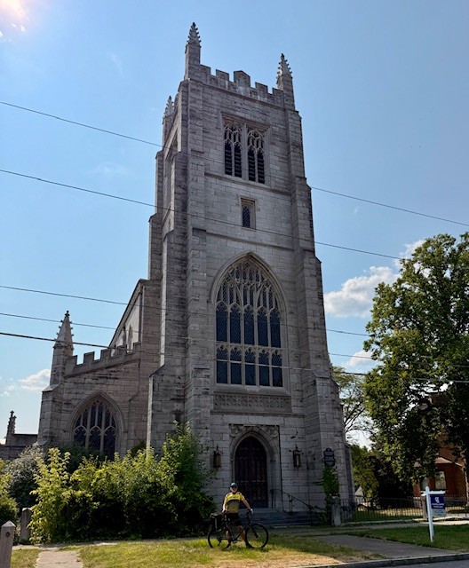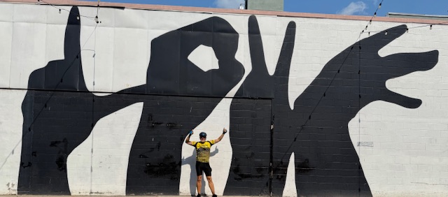 The Geneva Trinity Church was built in 1806 and is now for sale (hmmmm…. what a home that would be!)The “Our Lady of Peace” statue is dedicated to the veterans of the Civil War, the Spanish-American War and WWI. The statue, erected in 1939, has an unobstructed view of Seneca Lake. The view wasn’t always that clear, however. A building once stood directly in front of “Our Lady,” blocking her view of the Lake. The building mysteriously burned down. A second building was constructed in the same place, and it too burned down. A third building in the same spot met the same fate. Three strikes… and the Lady who demands a clear view of the Lake, gets a clear view of the Lake. Several miles from “Our Lady of Peace,” I tried to get my own unobstructed view of the Lake butt someone kept posing for the cover of Cyclist Magazine. We watched as a wedding party prepared for pictures in a park near the Lake.We “loved” this mural in Geneva titled, “Love: Spread it With Hands and Heart.”We capped off our long bike ride with a soft serve black raspberry ice cream cone… size small (!)