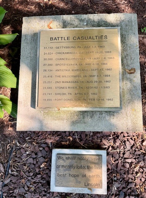 The Memorial honors all 620,000 soldiers who died in the Civil War. Of those, 57 were residents of Waterloo. Each of the 57 have a cenotaph in the Memorial with their name etched in stone.