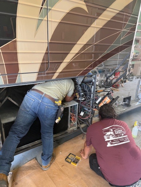The A/C Yoda agreed to meet us at Zomer RV, which is a well-run, trusted repair shop amongst the corn fields in Iowa. When we arrived, the guys were finishing up an A/C repair on another RV.