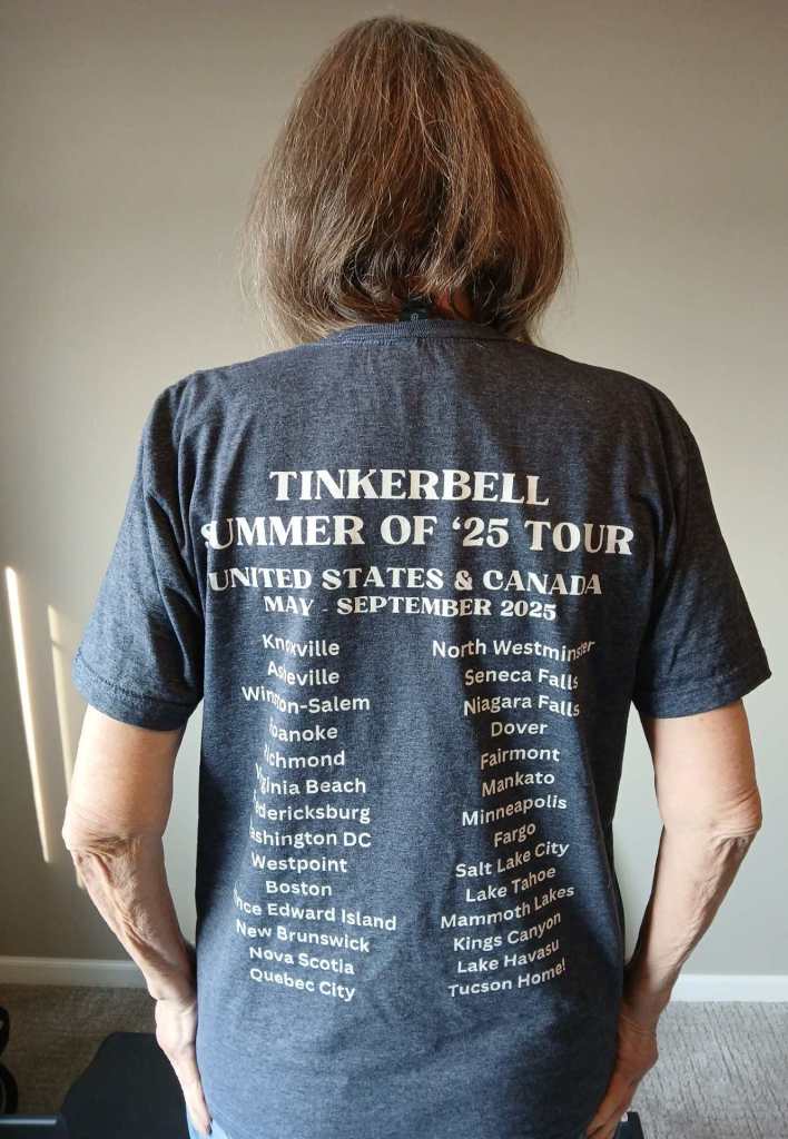 Cousin Mona was so thrilled to get a Tinkerbell’s Summer of 2025 Tour shirt! She loves to tell her friends about the “nuts” (that would be us) who spent three months bouncing around North America in a non-sensical maze that defied all logic.